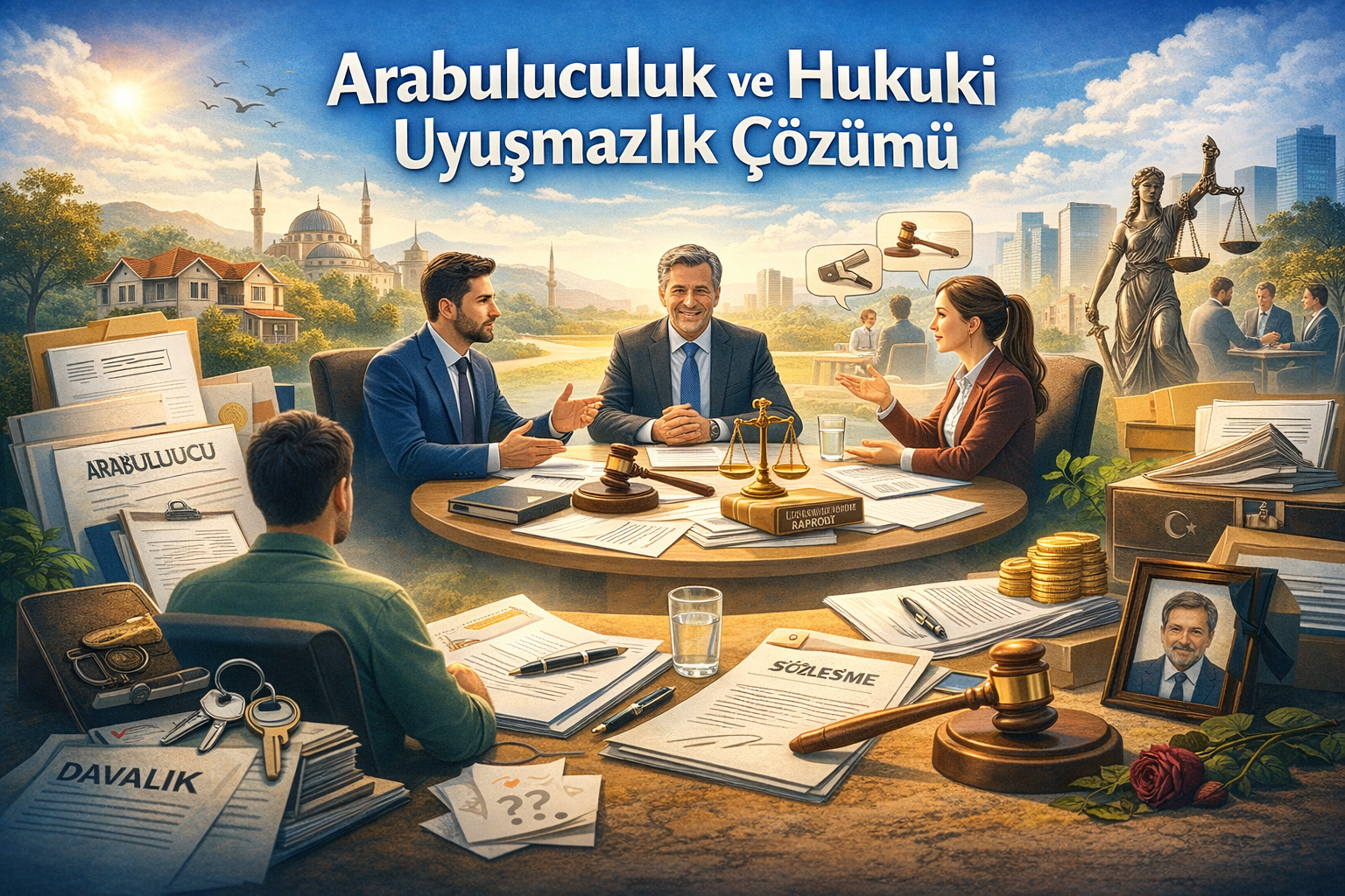 Hukuki uyuşmazlıklar, bireyler ve kurumlar arasında sıkça karşılaşılan durumlar arasında yer alır. Ancak her dava mahkemeye taşınmak zorunda değildir. Arabuluculuk, tarafların dava açmadan anlaşmasını sağlayan, hızlı ve maliyet avantajı sunan bir çözüm yöntemidir. Türkiye’de 2012 yılında yürürlüğe giren Arabuluculuk Kanunu ile birçok hukuk alanında mahkeme öncesi çözüm teşvik edilmektedir. Bu rehberde, arabuluculuk süreci, dava açmadan anlaşma yöntemleri ve mahkeme öncesi çözüm yollarını 2026 güncel uygulamalarına göre ele alacağız.