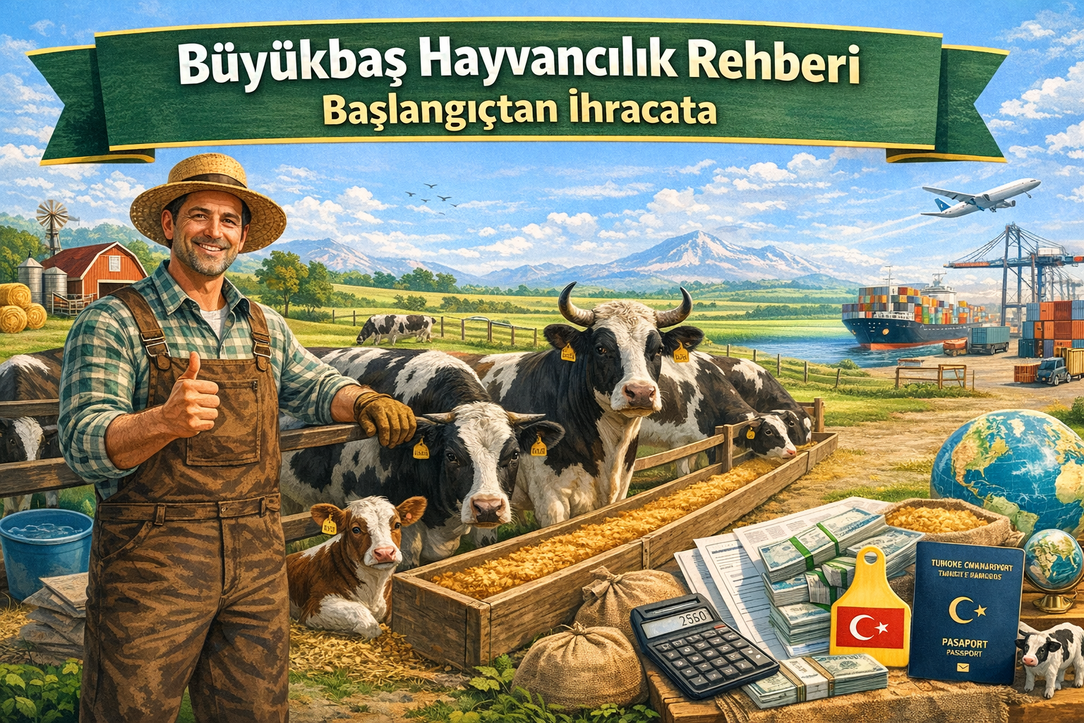 Bu rehberde büyükbaş hayvancılığa başlama süreci, gerekli yatırımlar, bakım koşulları, destekler ve ihracat aşamasına kadar izlenmesi gereken adımlar detaylı şekilde ele alınmaktadır.