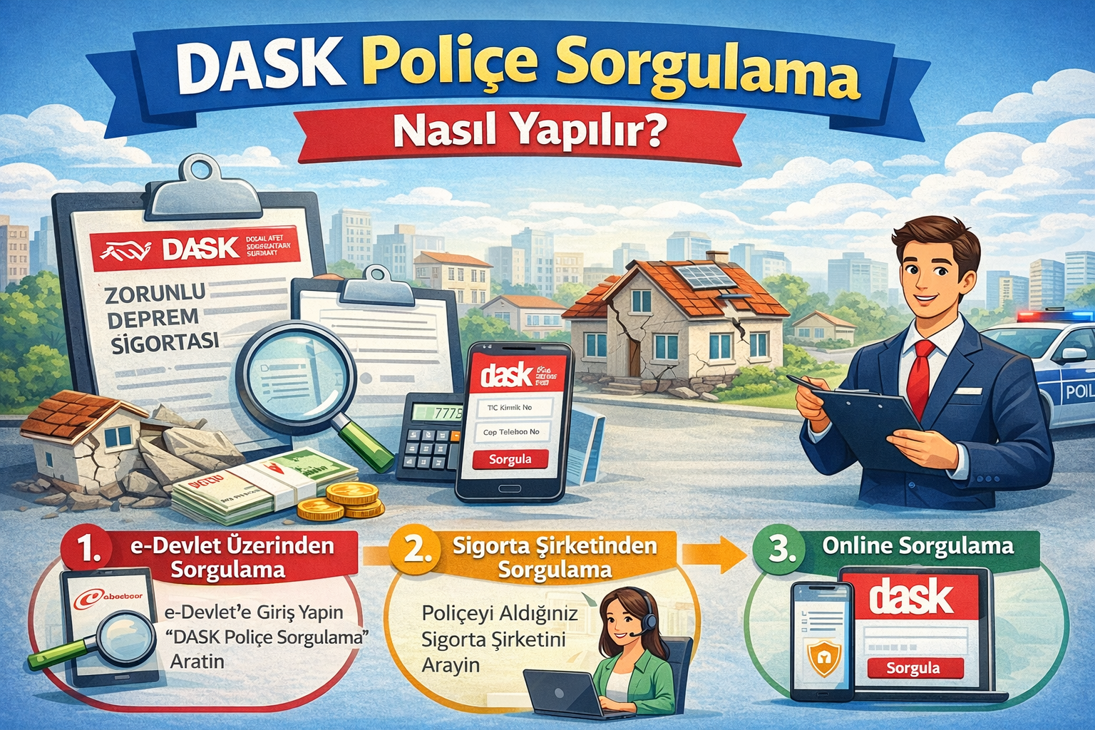 Bu rehberde, DASK poliçesi nedir, DASK poliçe sorgulama nasıl yapılır, hangi bilgiler ile erişilebilir ve sık sorulan soruların yanıtlarını detaylı şekilde bulabilirsiniz.