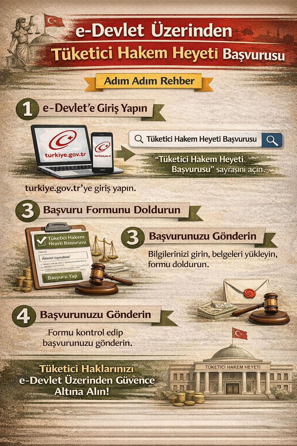 2026 yılında e-Devlet üzerinden tüketici hakem heyeti başvurusu için izlenmesi gereken adımlar şunlardır: